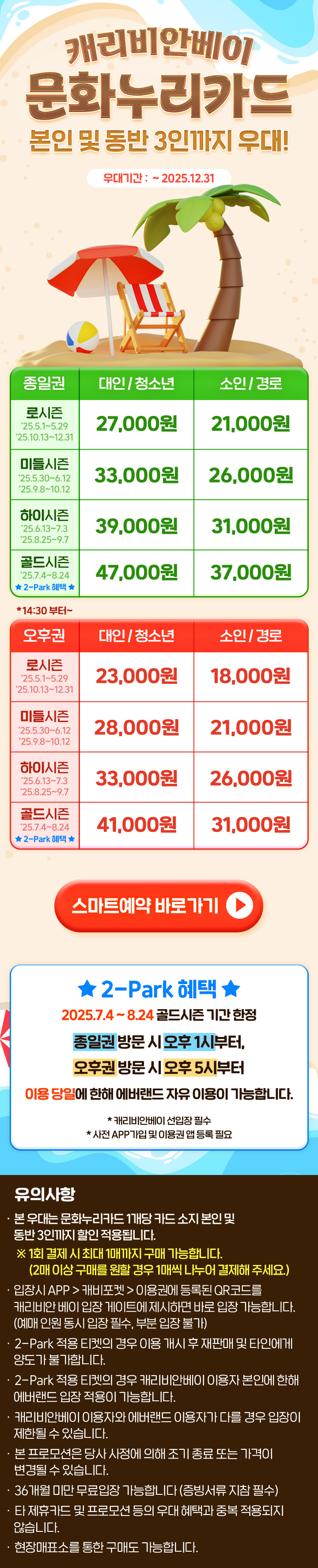 [추천할인] 캐리비안베이 문화누리카드 우대